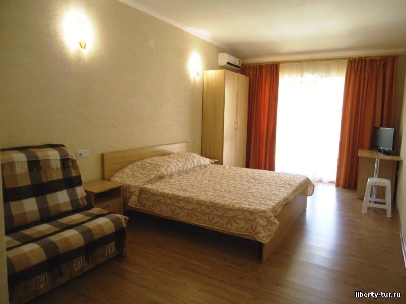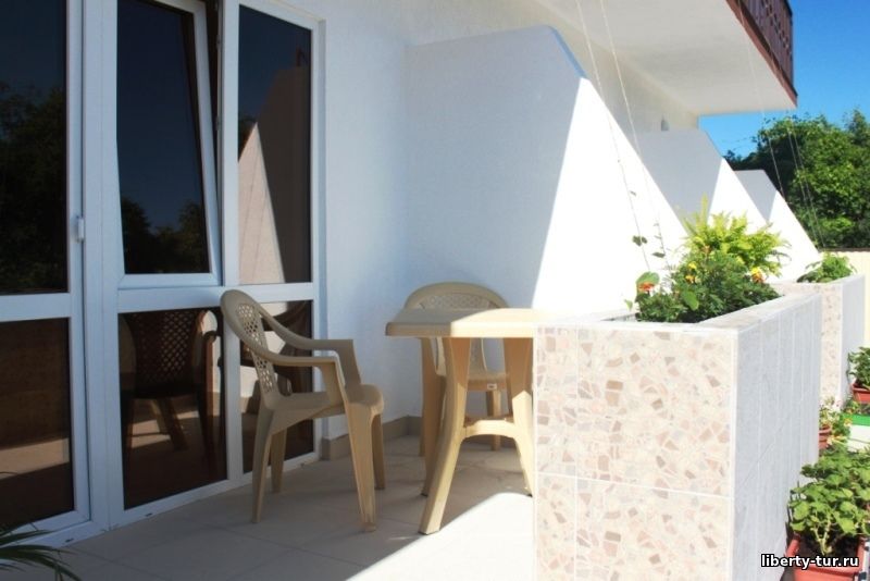 - 2-, 3-, 4-местные номера с удобствами. В номерах туалет, душ, телевизор, кондиционер, балкон (на 2 и 3 этаже) или балкон-веранда (на 1 этаже). Холодильник установлен на кухне и рассчитан на несколько номеров.