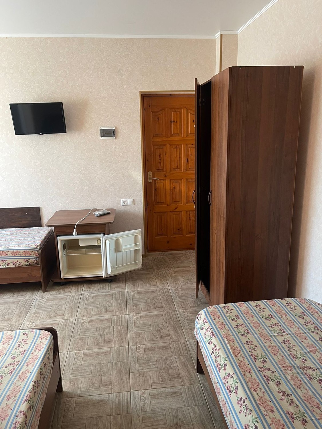 3-мест. номера стандарт: площадь - 22 м2, душ, туалет, холодильник, телевизор, кондиционер шкаф для белья, журнальный столик, прикроватная тумбочка.