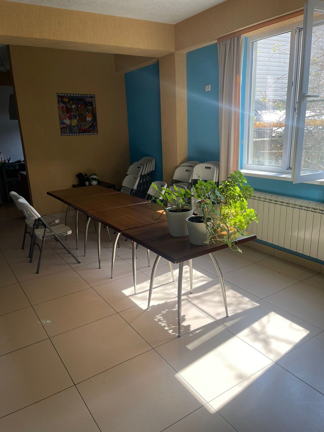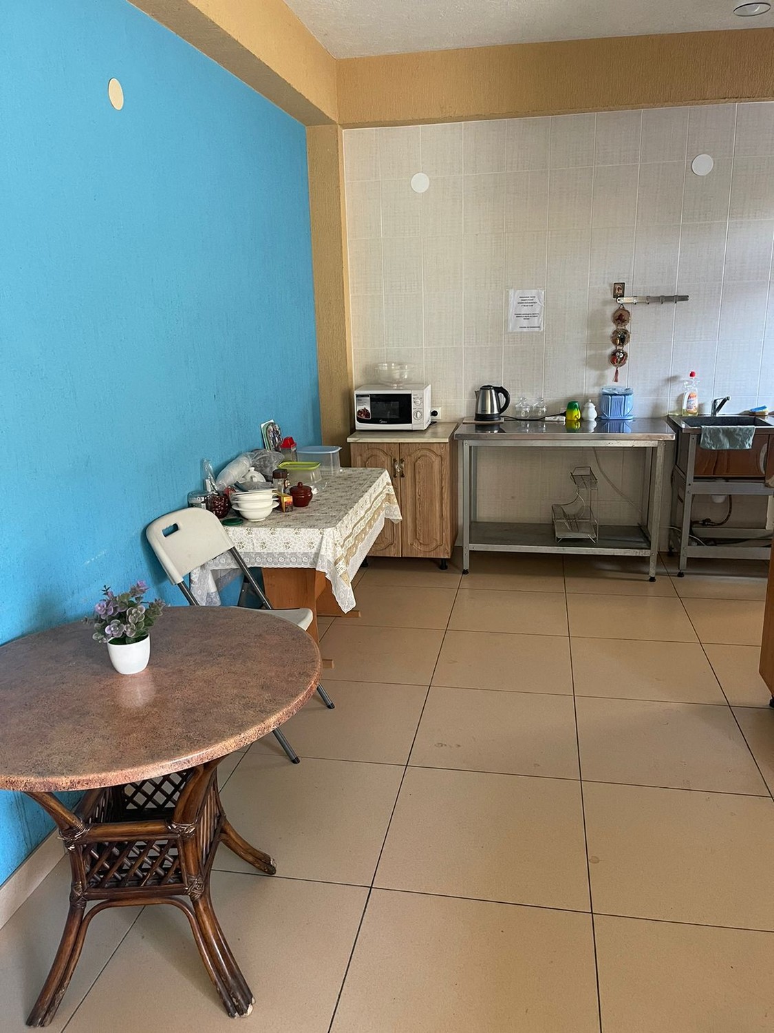 Оборудованная кухня с бытовой техникой и обеденной зоной, возможность готовить еду самостоятельно. Рядом есть столовые (ближайшая 50м).