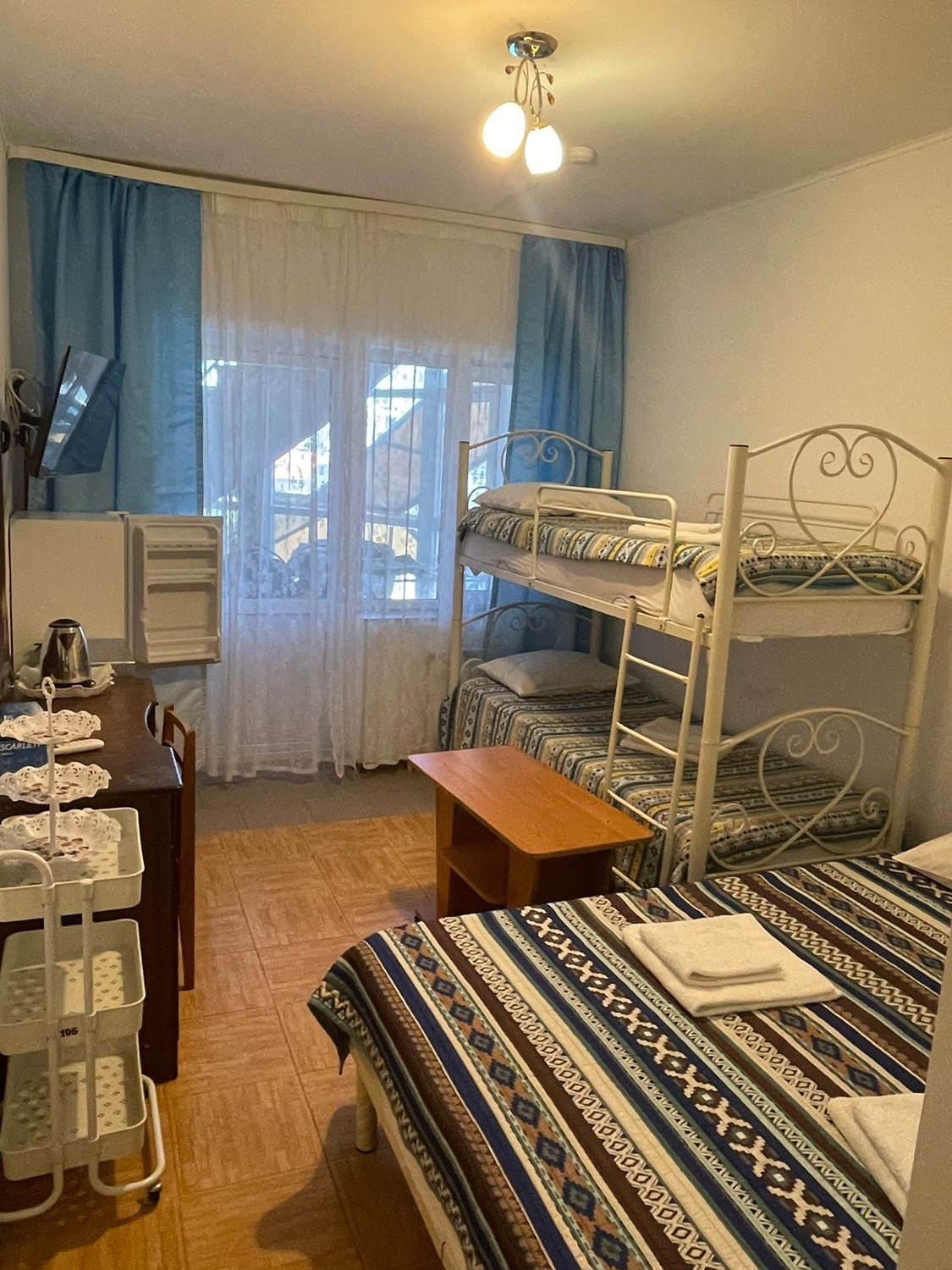 4-мест. номера стандарт: ТВ, холодильник, кондиционер, 2-спальная кровать и 2-ярусная кровать.