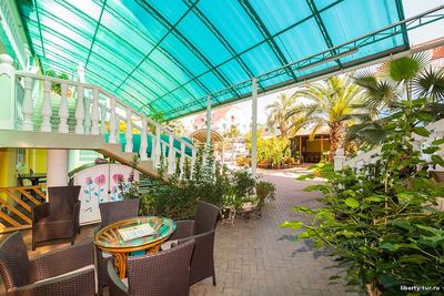 Гостиница находится в 5 км от центра Адлера, 4-этажное современное здание, оборудованное всем необходимым для комфортного отдыха. В уютном красивом дворике, окруженном цветами и зеленью, имеется беседка для отдыха, крытый бассейн с пресной водой.