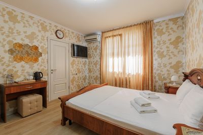 2-местный стандарт: ТВ, холодильник, кондиционер, 2-спальная кровать или две 1-спальные кровати, площадь ~ 14 кв.м., расположены на 1-2-3-4 этажах. Доп. место не предусмотрено.