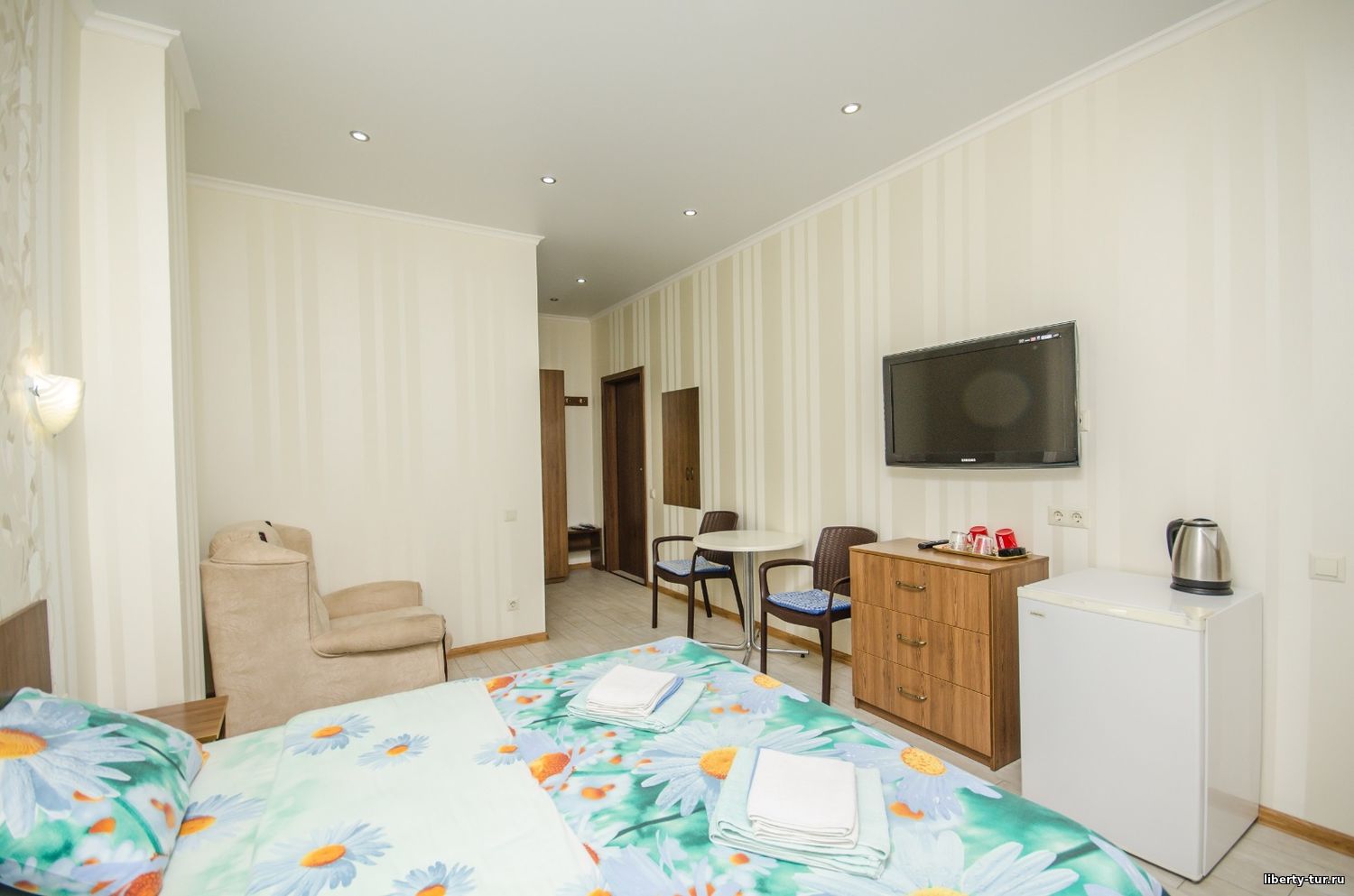 - 2-местные с удобствами. В номерах туалет, душ, телевизор, холодильник, кондиционер, набор посуды, чайник, балкон.