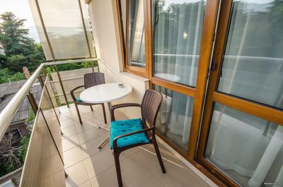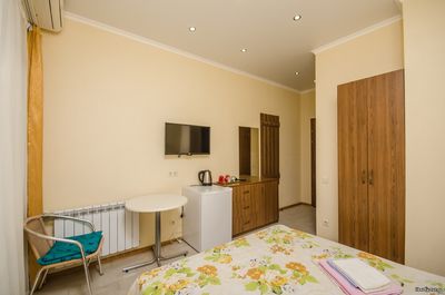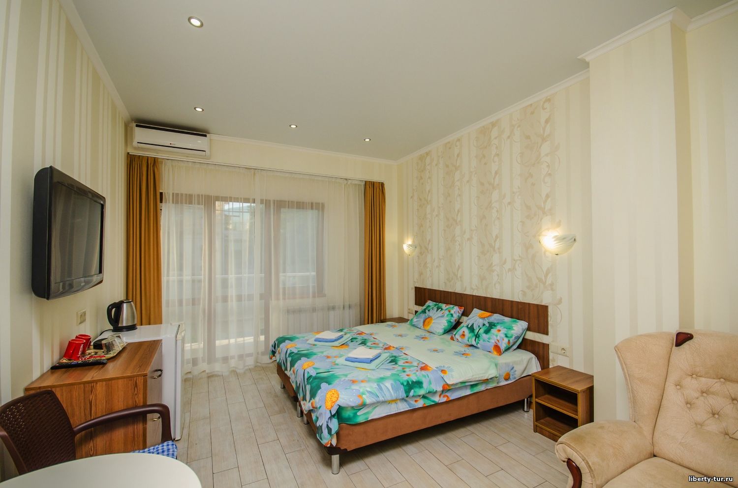 - 2-местные улучшенные с удобствами. В номерах туалет, душ, телевизор, холодильник, кондиционер, набор посуды, чайник, балкон.