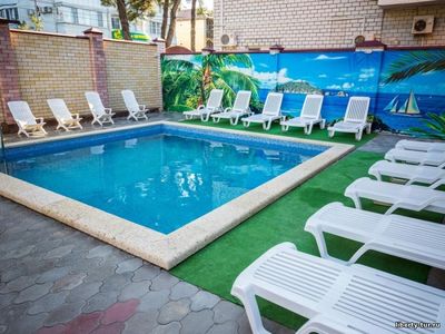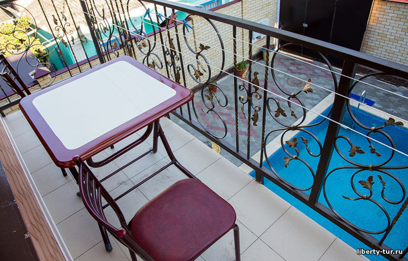 К услугам отдыхающих: закрытый благоустроенный двор с местами для отдыха, бесплатный Wi-Fi на территории, 2 бассейна с подогревом детский (6х3 метра, глубина 0,90 метров) и взрослый (5х5 метров, глубина 1,70 метров), теннисный стол, детская игровая площадка, детская анимация, сейф у администратора. Фен, утюг по запросу. Автостоянка перед гостевым домом. За доп. плату: стиральная машина, прокат аудио-видео, DVD, караоке, библиотека, прокат детских колясок, настольный теннис.