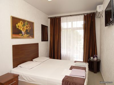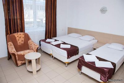 - 2-, 3-местные номера с удобствами. В номерах туалет, душ, телевизор, холодильник, кондиционер, эл. чайник, балкон.