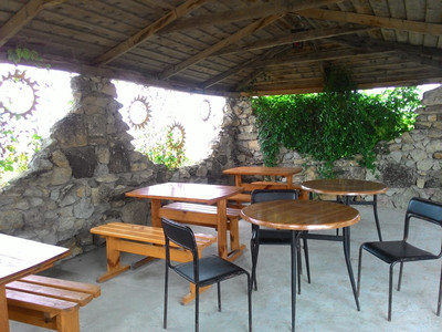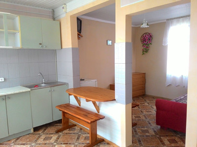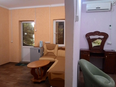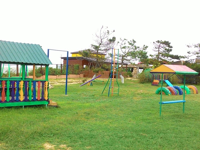 Закрытая своя собственная территория. На территрии 8 зданий на 19 номеров. Корпус и домики. .Детская площадка. Мангал. Имеется автостоянка.Wi-Fi, спутниковое ТВ, бильярдный стол, танцпол. Ежедневная дискотека. За доп плату: сауна, экскурсии ,прачечная ( стиральная машина). Предоставляется гладильная доска, утюг.