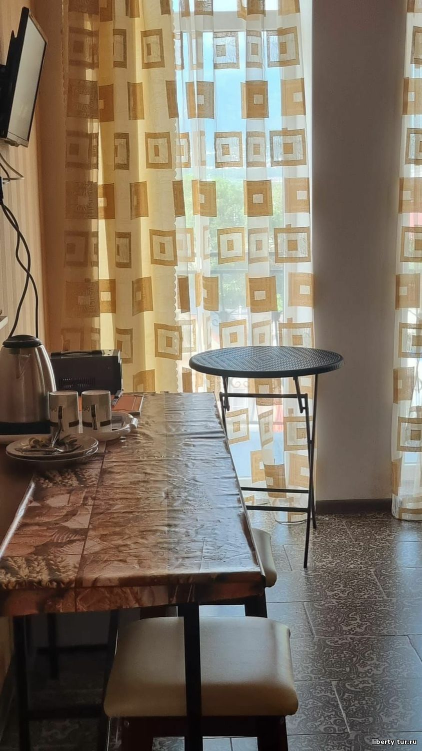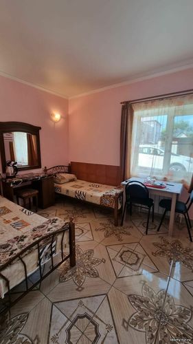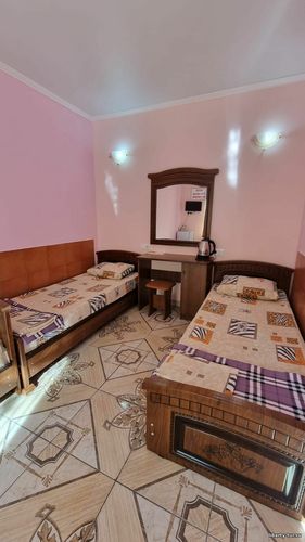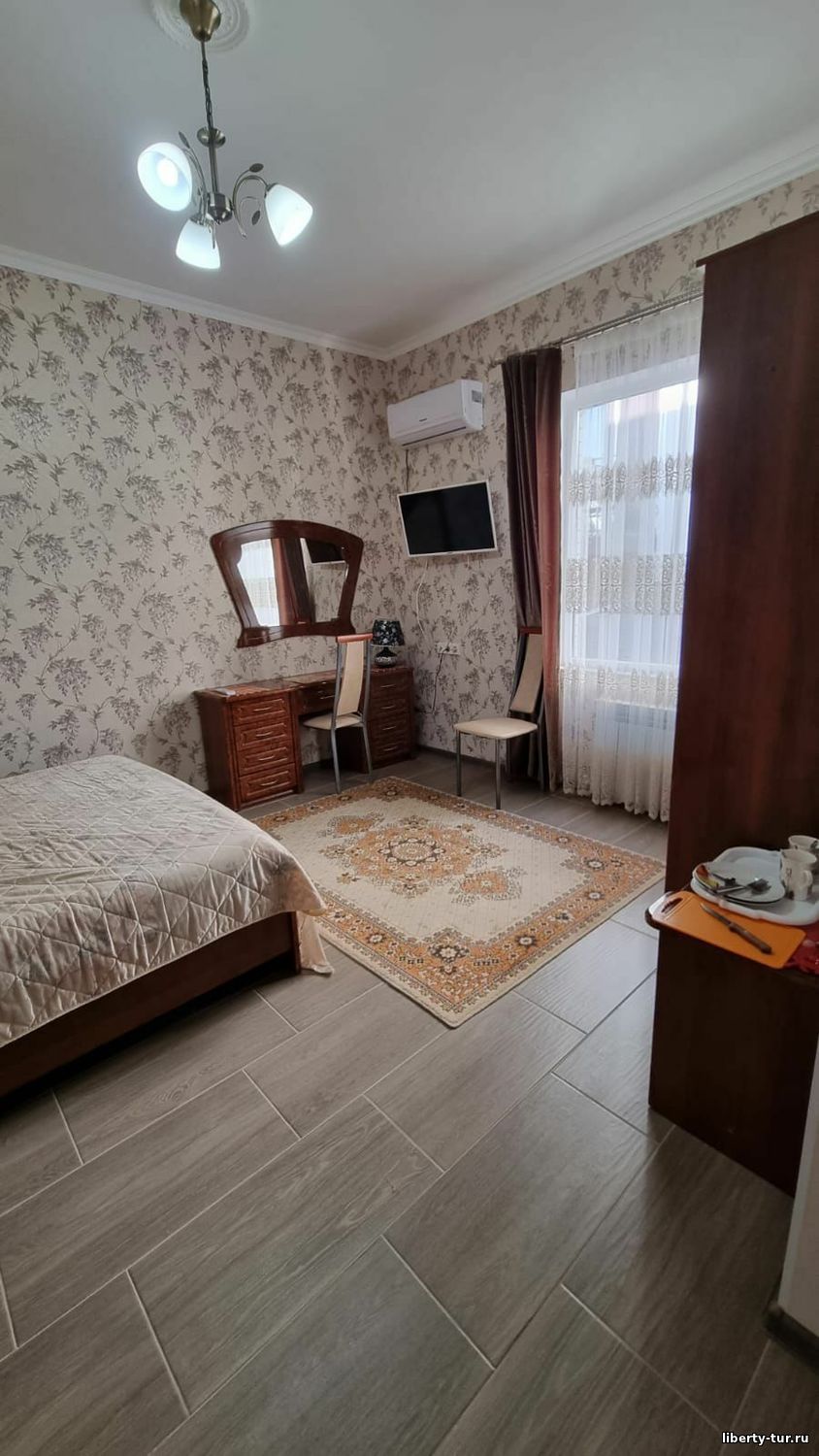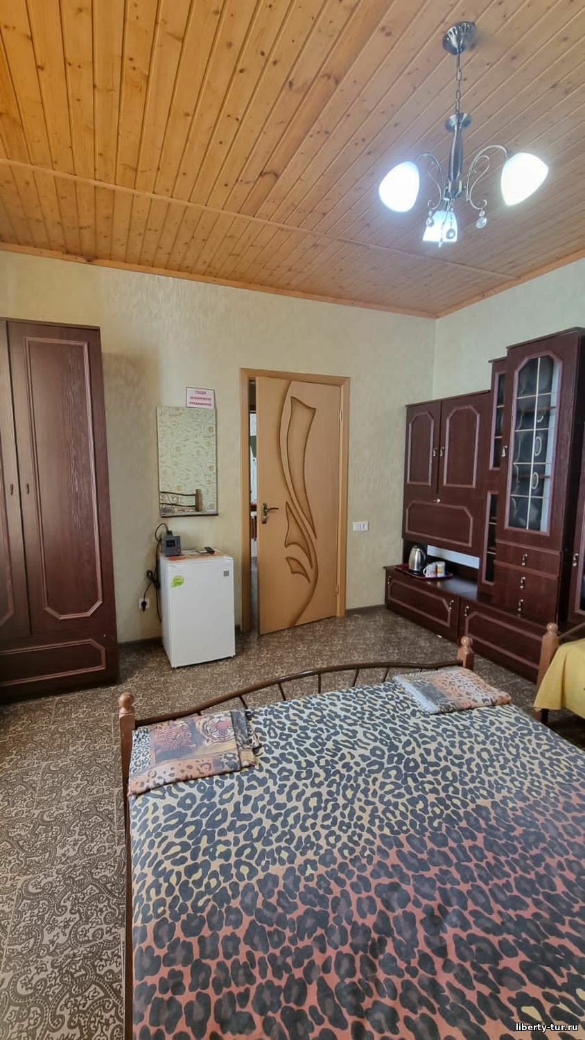2-3-4-мест. стандарт: односпальные или двуспальная кровати, диван-кровать, кресло-кровать, шкаф, стулья, пуфики, прикроватные тумбочки, журнальный столик, вешалка, зеркало, сплит-система, телевизор, цифровое ТВ, холодильник, эл. чайник, посуда, душ+туалет. Ориент.площадь номеров – 20кв.м. Часть номеров с балконом, часть без балкона – уточняйте при бронировании.