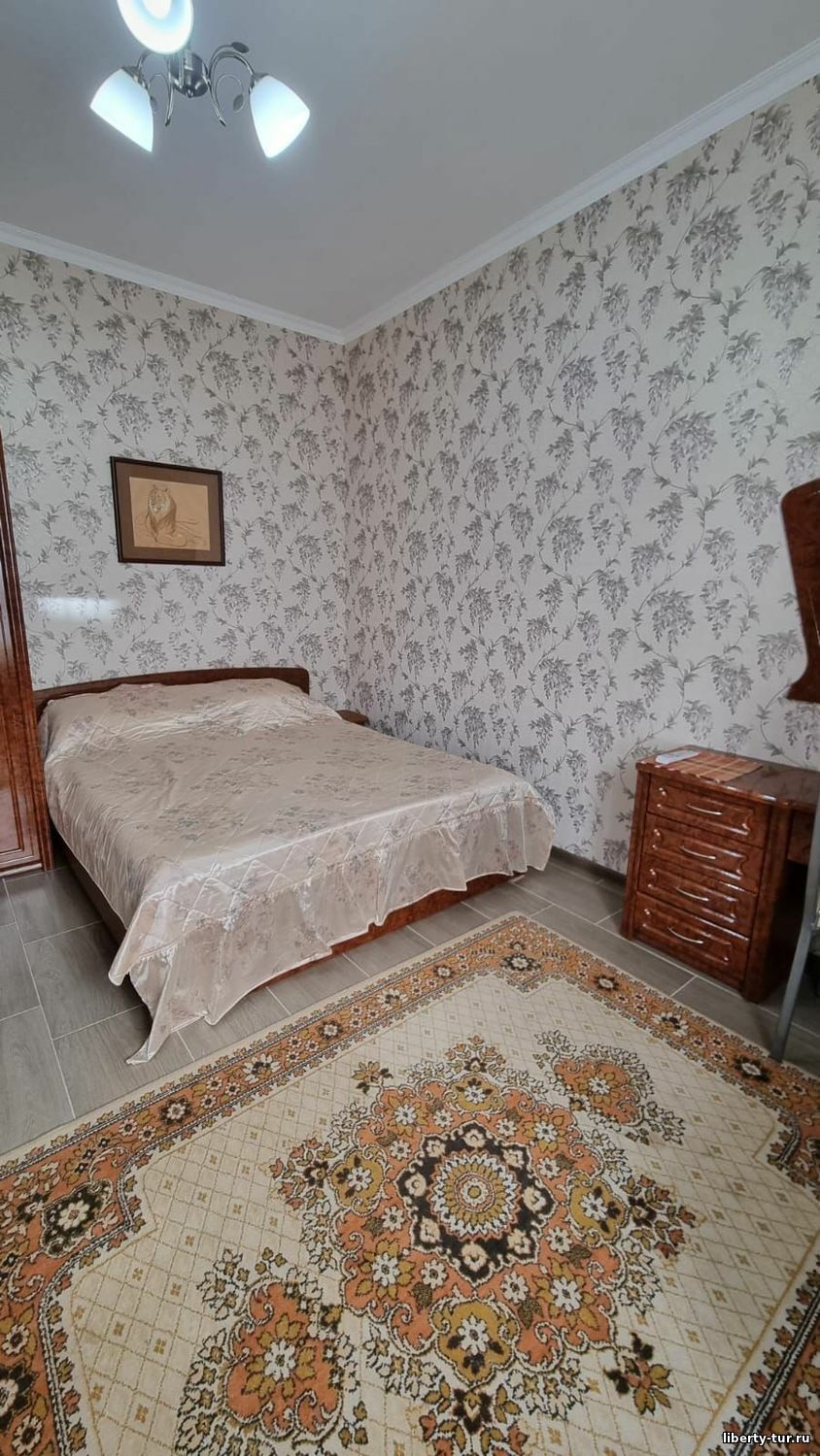 Стандарт 2-комнатный (5-6человек): односпальные или двуспальная кровати, диван-кровать, кресло-кровать, шкаф, стулья, пуфики, прикроватные тумбочки, журнальный столик, вешалка, зеркало, сплит-система, телевизор, цифровое ТВ, холодильник, эл. чайник, посуда, балкон, душ+туалет. Ориент.площадь номеров 36-38кв.м.