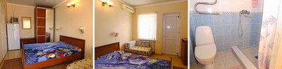 Размещение: Вашему вниманию представлены комфортабельные номера со всеми удобствами полулюкс и эконом класса. Существуют выходы на балконы, и общая кухня на два номера. Питание: самостоятельное, оборудованная кухня. В каждом номере сплит - система, телевизор, холодильник. Горячая вода постоянно.