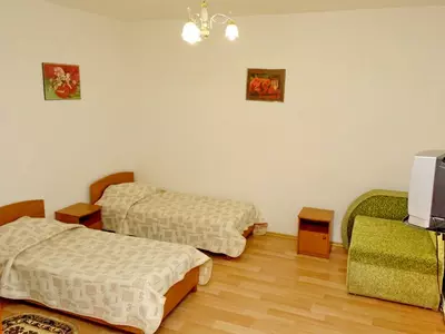 1-, 2-, 3-местные номера с удобствами с вентилятором (односпальные кровати, шкаф, стулья,