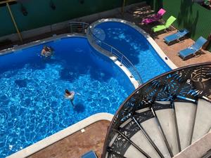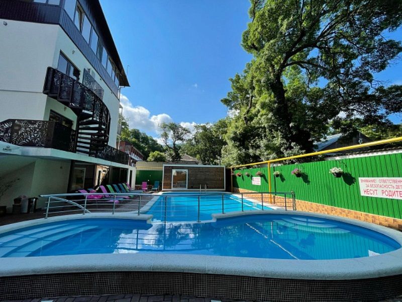 Инфраструктура и услуги: большой бассейн с подогревом, оснащенный отдельными зонами для взрослых и детей, игровая площадка, батут, игровая приставка PS3 - для детей; бильярд, бесплатный Wi-Fi на всей территории; гладильня доска и утюг - на этаже; стирка личных вещей – платно, автостоянка - бесплатная перед отелем или рядом есть платная