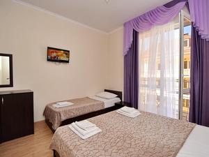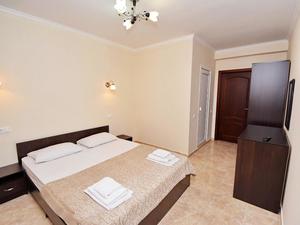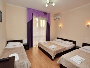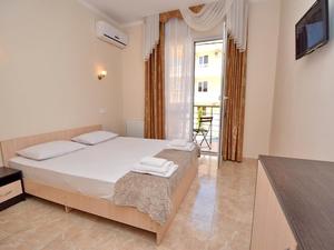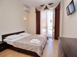 Размещение (все номера оснащены ванной комнатой): номерной фонд гостевого дома представлен современными номерами категорий стандарт. Во всех номерах установлена новая мебель, выполнен качественный ремонт. В каждом номере есть холодильник, телевизор, Wi-Fi, санузел, душ. Большинство номеров с балконом и летней мебелью. На этажах установлены гладильные доски с утюгами. Подача горячей и холодной воды осуществляется круглосуточно.