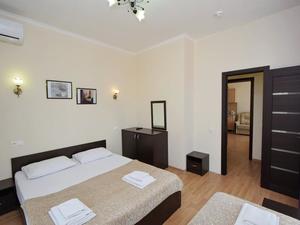 4-мест. стандарт: двуспальная кровать и две односпальные кровати, набор современной мебели, телевизор, кондиционер, холодильник, Wi-Fi, санузел, душ, балкон.