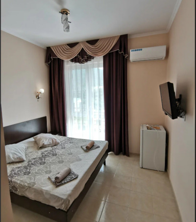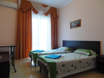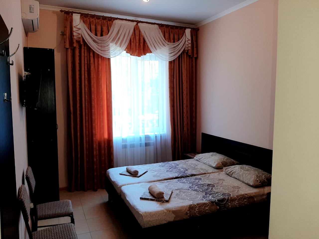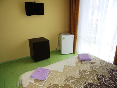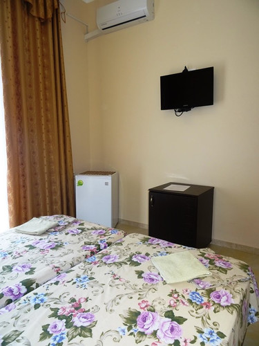 - 2-местные номера с удобствами. В номерах туалет, душ, телевизор, холодильник, кондиционер. Номер расположен на 1 этаже.