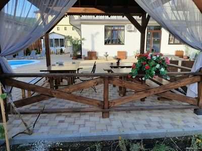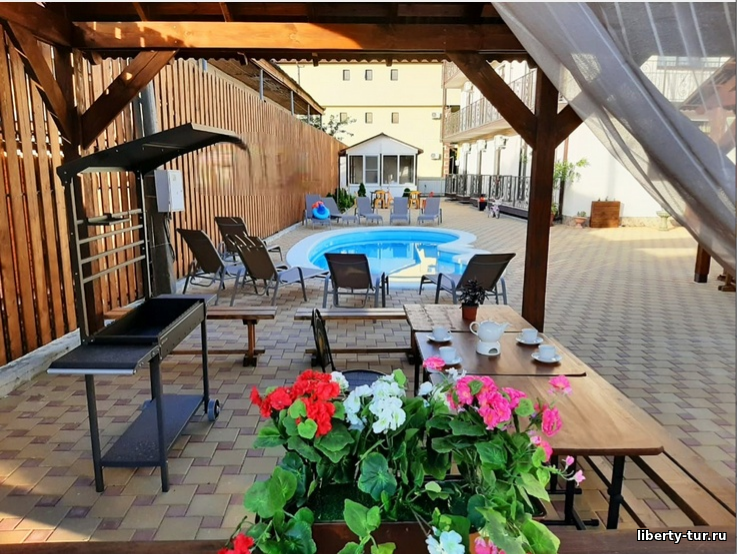 К услугам отдыхающих: красивый двор с местами для отдыха, бесплатный Wi-Fi на территории, беседки, бассейн с подогревом (3,5х8,75 метров), лежаки, мангал (пользование может быть ограниченно в связи с действием Правил пожарной безопасности), утюг, гладильная доска, стиральная машина за доп. плату.