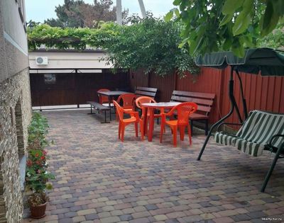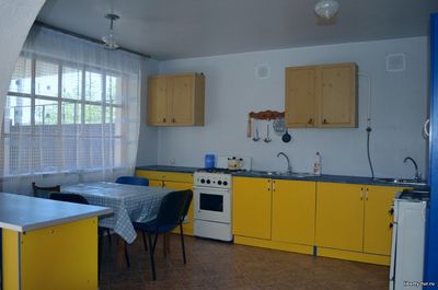 Инфраструктура: тихая зеленая улица, во дворе имеются столы со стульями, где можно отдохнуть и пообедать. Есть просторные 2 кухни с плитами , холодильниками, телевизорами, полным набором посуды. Имеется автостоянка. Есть мангал для всех желающих самим приготовить шашлык.