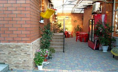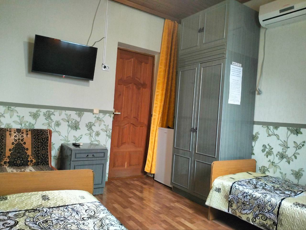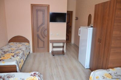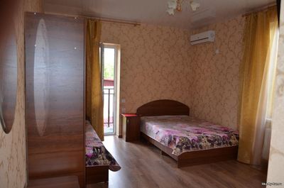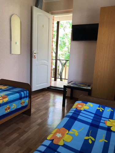 Размещение: частный коттедж (реставрирован в 2011 г.) с размещением на 1-ом этаже с удобствами на территории. (4 душа, 3 санузла). Размещение на 2-ом этаже в 2-х, 3-х, 4-х местных номерах с удобствами на этаже, с удобствами в номере, холодильники на этаже, имеется гладильная доска. 2-х, 3-х местные номера со всеми удобствами. Сплит система, TВ*, холодильник.