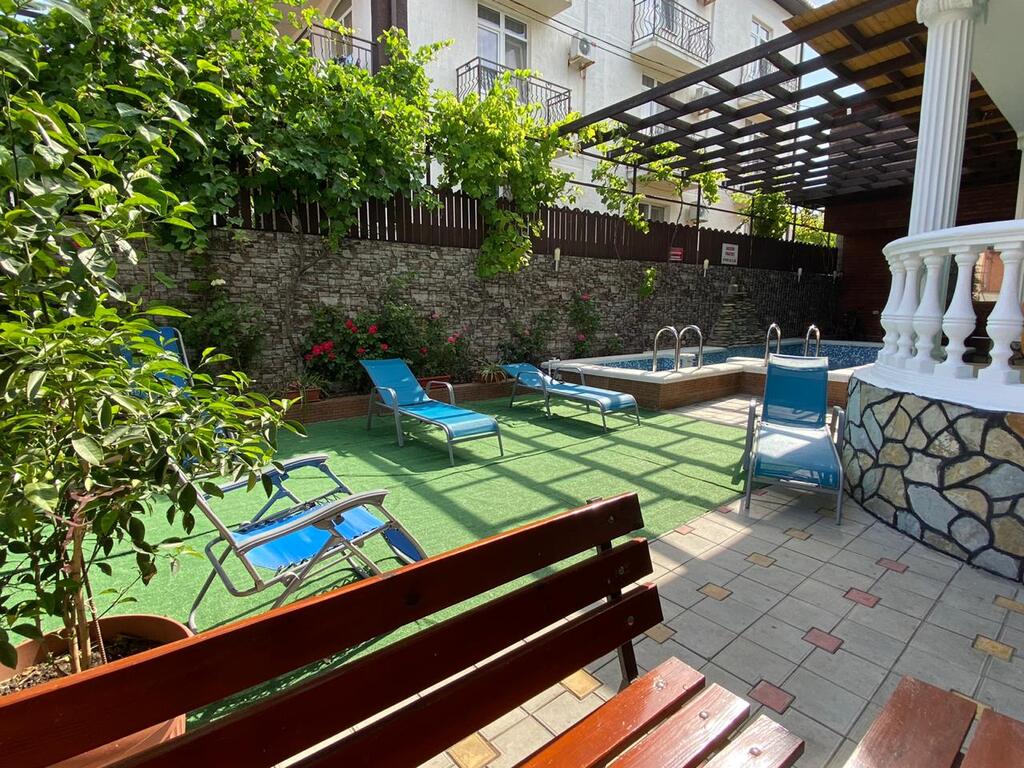 К услугам отдыхающих: закрытый двор со столиками для отдыха, бассейн (7х3 метров, глубина 1,65 метра) мангал (пользование может быть ограниченно в связи с действием Правил пожарной безопасности), парковка, бесплатный Wi-Fi на территории, гладильная доска, утюг.