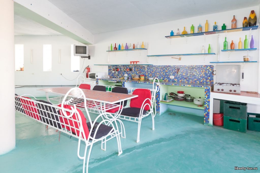 Питание: на первом этаже расположена кухня, оборудованная всем необходимым для приготовления пищи. На втором этаже есть кафе-бар, где можно заказать питание (трехразовое ≈ 800 рублей)
