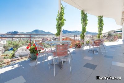 Расположение: частная гостиница находится в уютном районе посёлка Коктебель. Из номеров, столовой, тренажерного зала, комнаты игр открываются великолепные виды на вулкан Карадаг и гору Хамелеон. Рынок, аквапарк, рестораны, ночные клубы в 10 минутах ходьбы от гостиницы.
