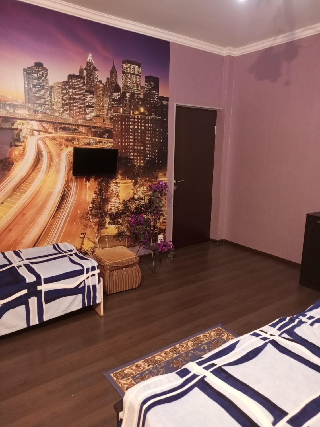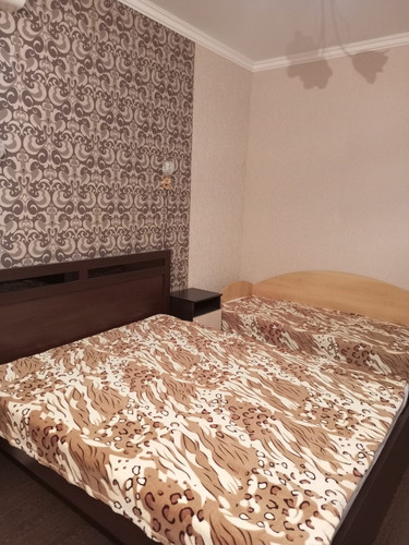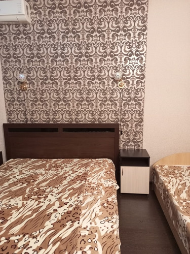 3-х местные номера “эконом” оборудованы: 2-х спальная кровать + односпальная кровать, тумбочки, столик, телевизор, сплит-система, трюмо, шкаф для одежды, санузел на этаже на два номера.