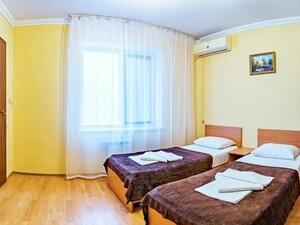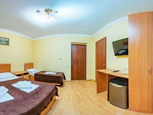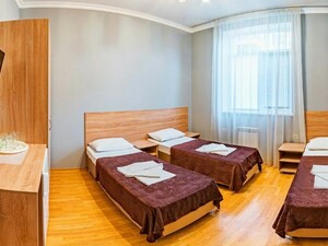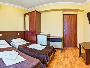 3-мест. Стандартный: 1-спальная кровать и 2-спальная кровать или три 1-спальные кровати, прикроватные тумбочки, шкаф, вешалка, зеркало, площадь ~20 кв.м