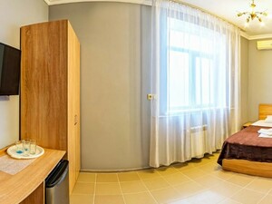 1-мест. Стандартный: 1-спальная кровать, прикроватные тумбочки, шкаф, вешалка, зеркало, площадь ~14 кв.м.