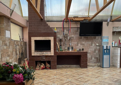 Питание: на цокольном этаже расположена кухня, оборудованная всем необходимым для приготовления пищи. Есть летняя кухня.
