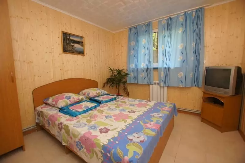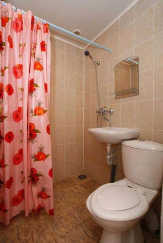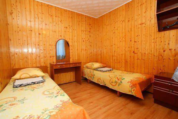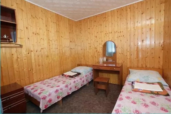 2-х местные номера с удобствами (WC, душ, ТВ, вентилятор, двуспальная кровать, прикроватные тумбочки, стулья, шкаф). Холодильник на этаже.