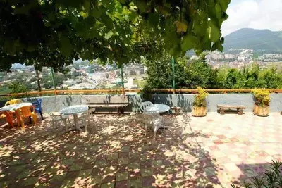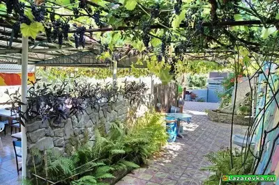 Гостевой дом "Аист" находится в тихом и экологически чистом районе курортного поселка Лазаревское. Лазаревское представляет собой уютный и спокойный поселок, предоставляющий массу возможностей для полноценного отдыха. С одной стороны здесь теплое и ласковое море, с другой поселок окаймлен скалистыми отрогами, которые создают не менее интересную картину, привлекая любителей природы невероятными пейзажами. Курорт Лазаревское - это 280 дней солнца и тепла в году. Из окон и с террас гостевого дома "Аист" открывается прекрасная панорама на поселок Лазаревское, море и горы. Это вполне компенсирует расстояние, которое потребуется пройти до пляжа. Находясь на балконе номера можно наблюдать завораживающие виды и делать чудесные фотографии восходов и закатов. Впечатления не передать словами, это можно только увидеть и почувствовать, поселившись на отдыхе в доме "Аист". Территория: в доме имеется общая кухня со столиками под тенистым виноградником - уютно настолько, что скорее напоминает летнее кафе, чем рядовую кухню. Кроме того есть мангал для приготовления шашлыка и коптилка для мяса и рыбы, кстати рыбу можете поймать сами в море на "самодур".