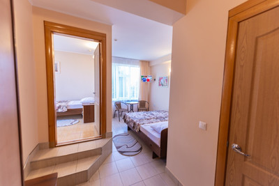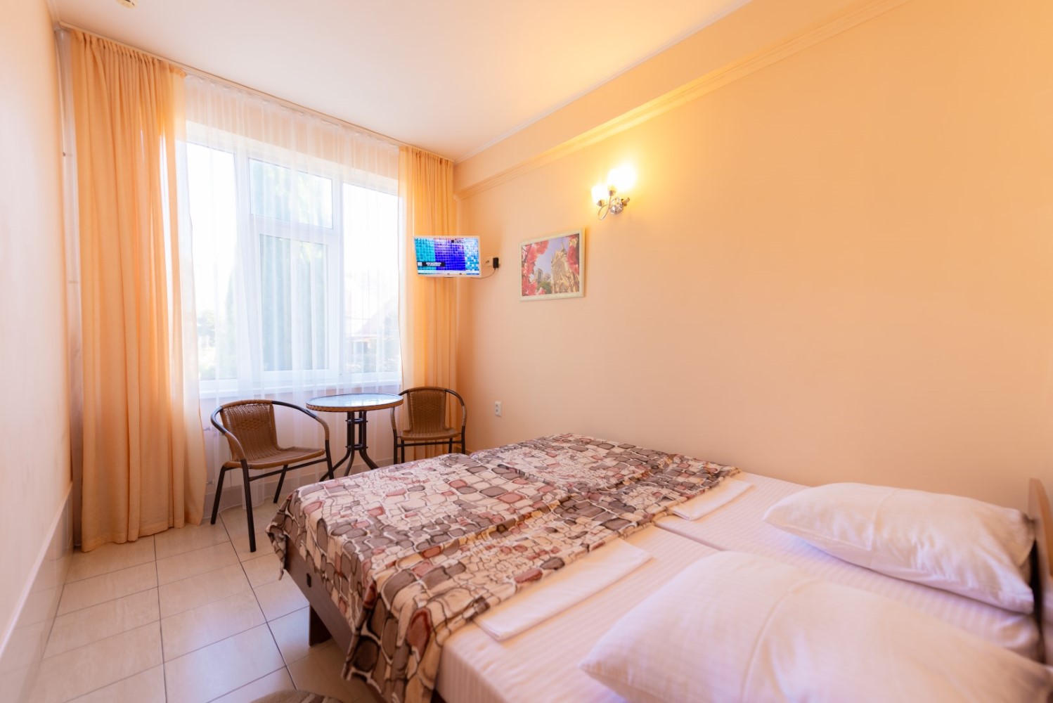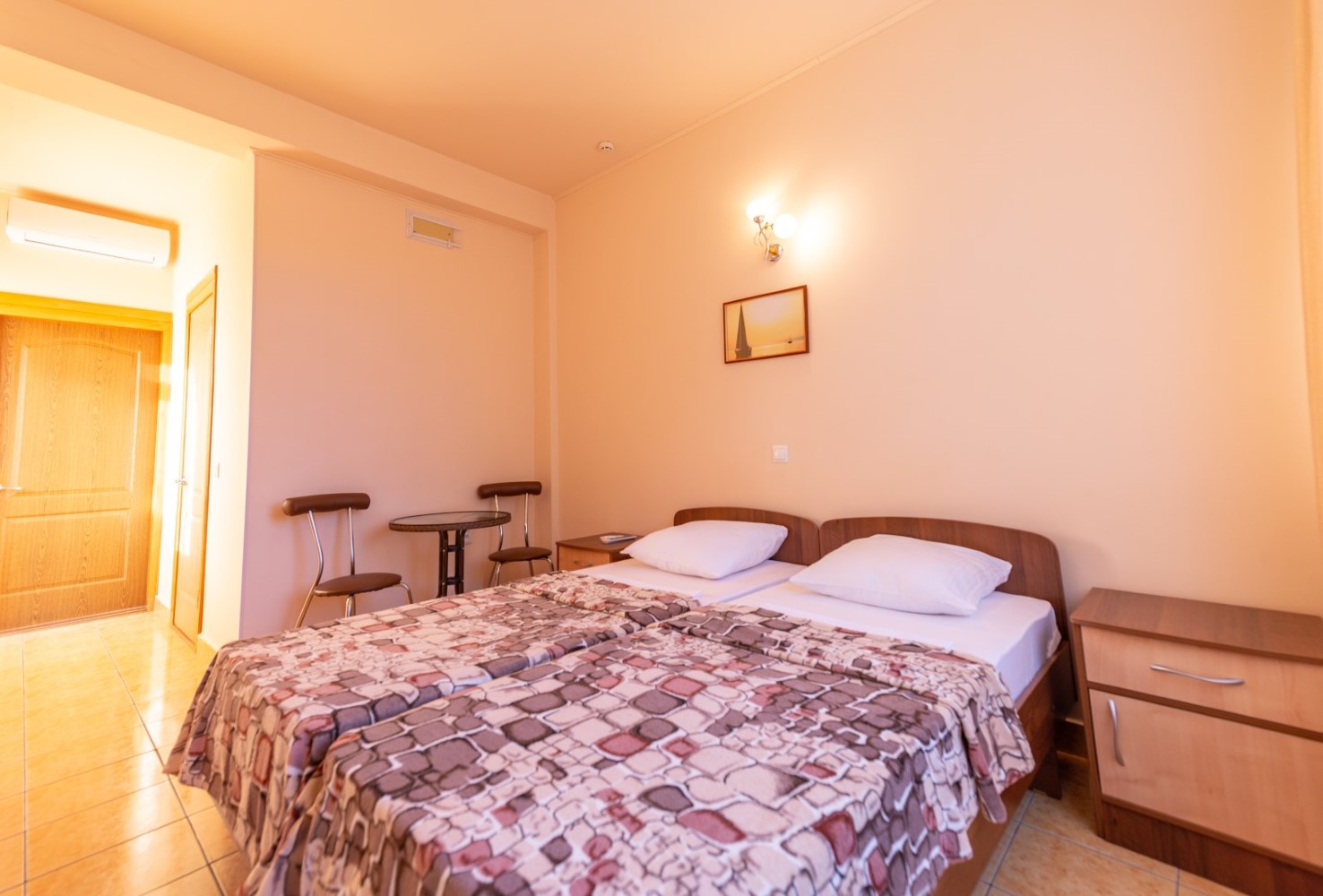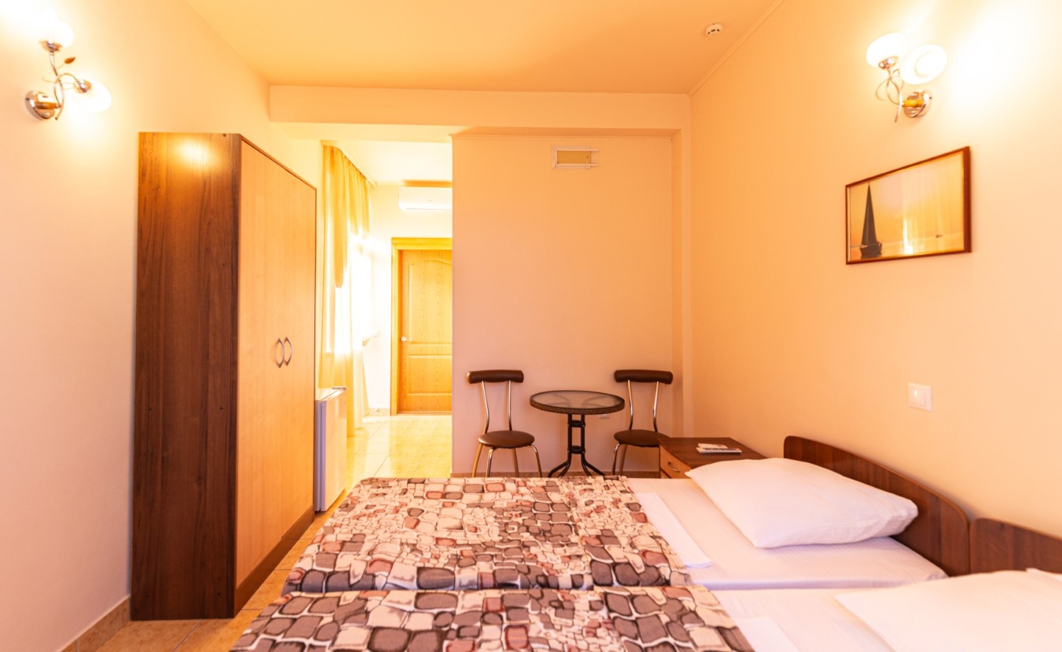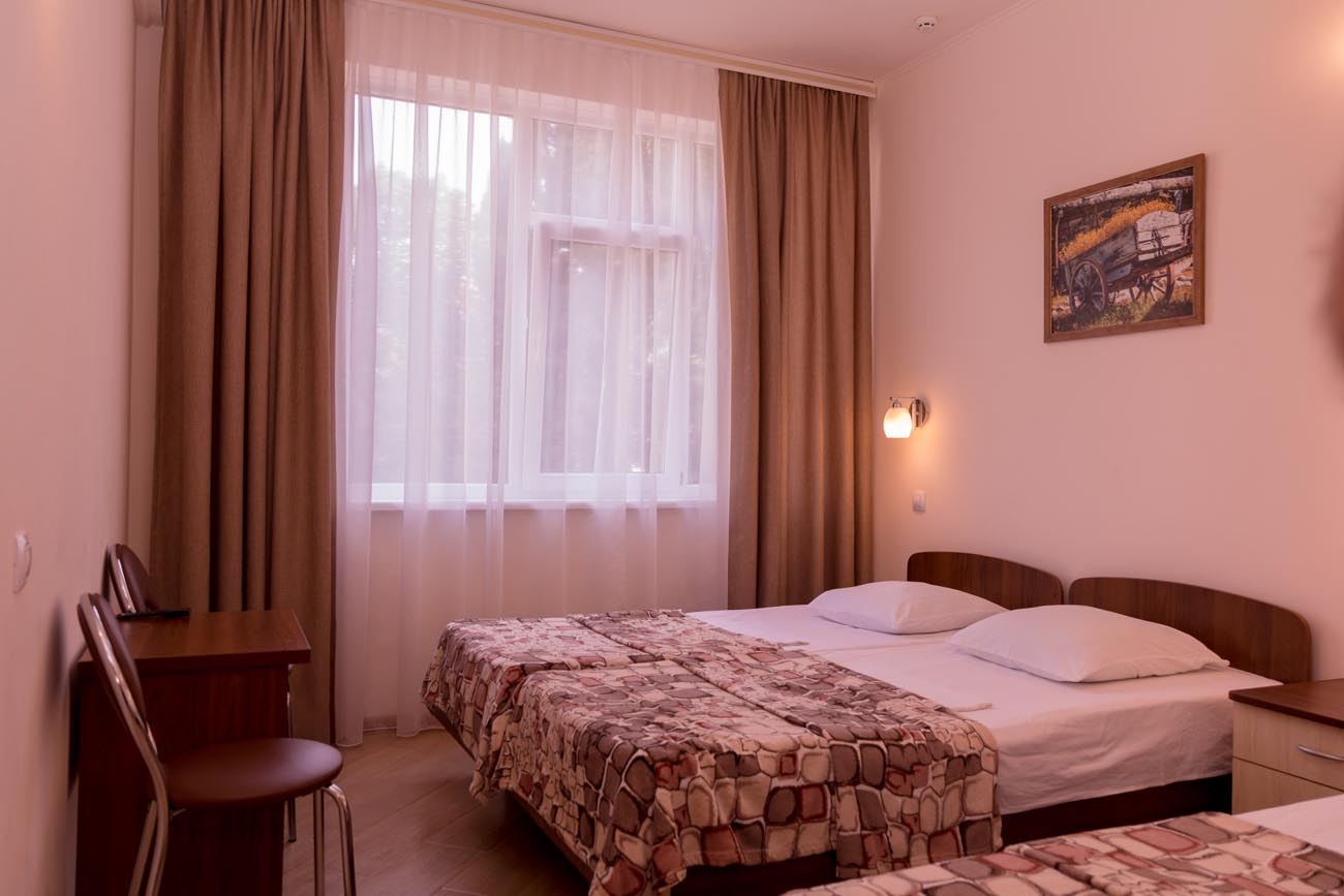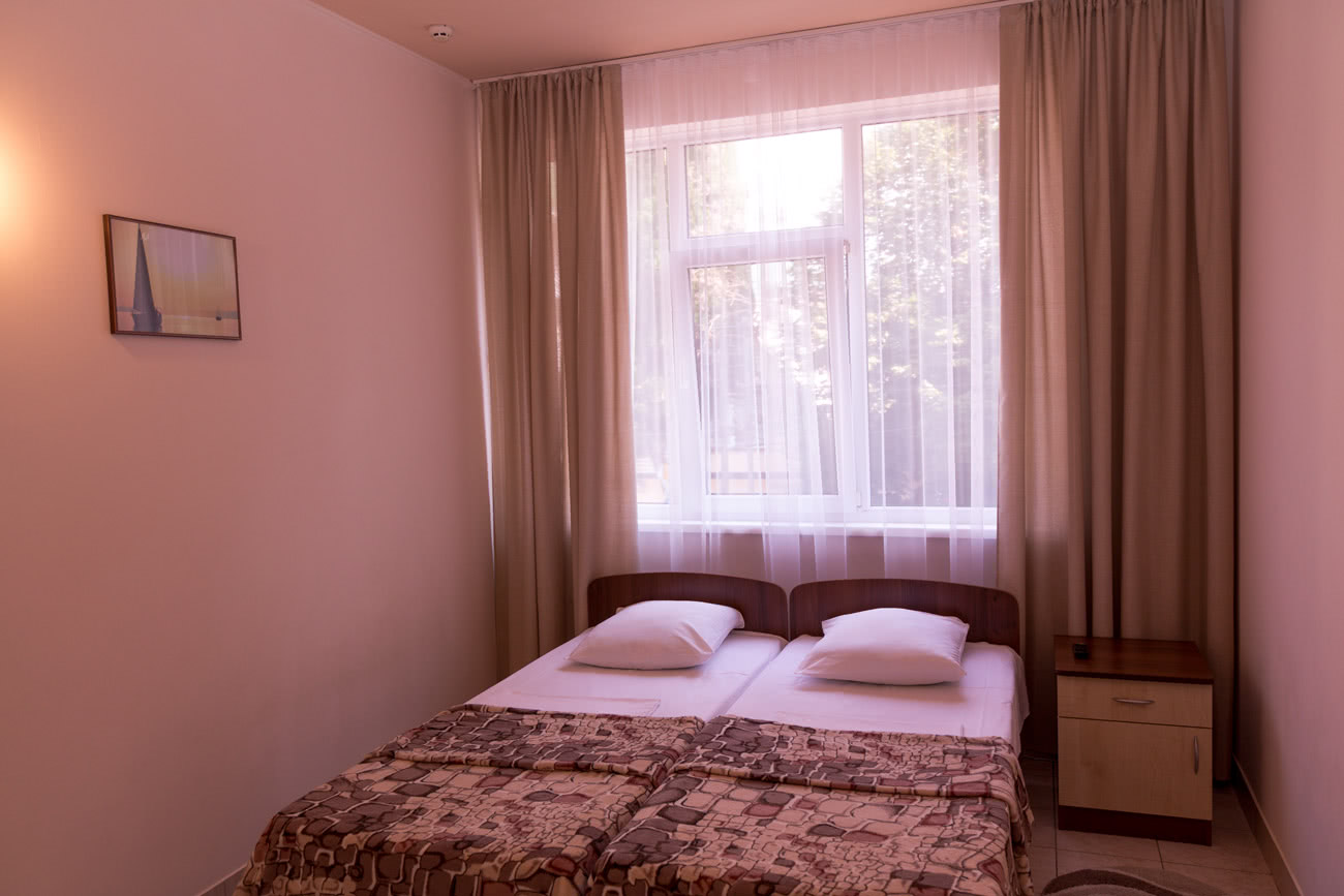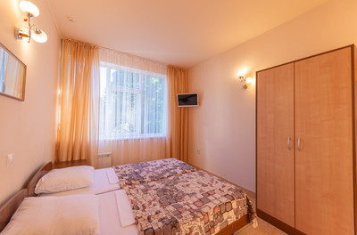 2-мест. стандарт без балкона: ТВ, холодильник, кондиционер, фен, 2-спальная кровать или две 1-спальные кровати, номера на 2-3 этаже, площадь номера 14-17 кв.м.