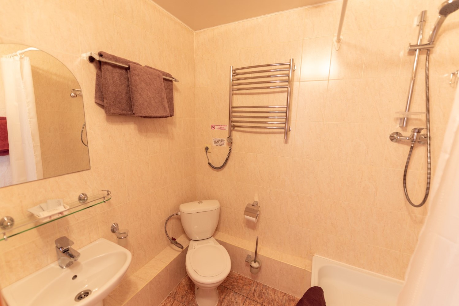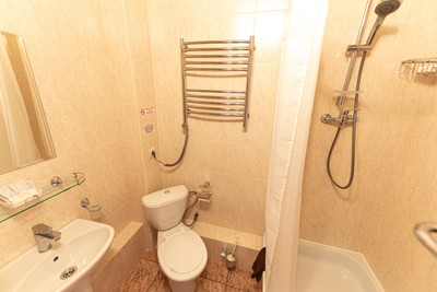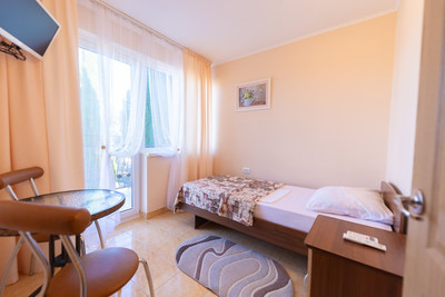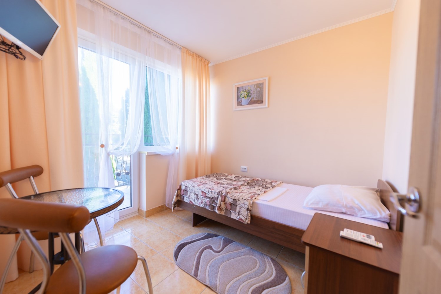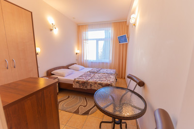 1-мест. стандарт: ТВ, холодильник, кондиционер, фен, 1-спальная кровать, номера на 3 этаже, площадь номера 13 кв.м.