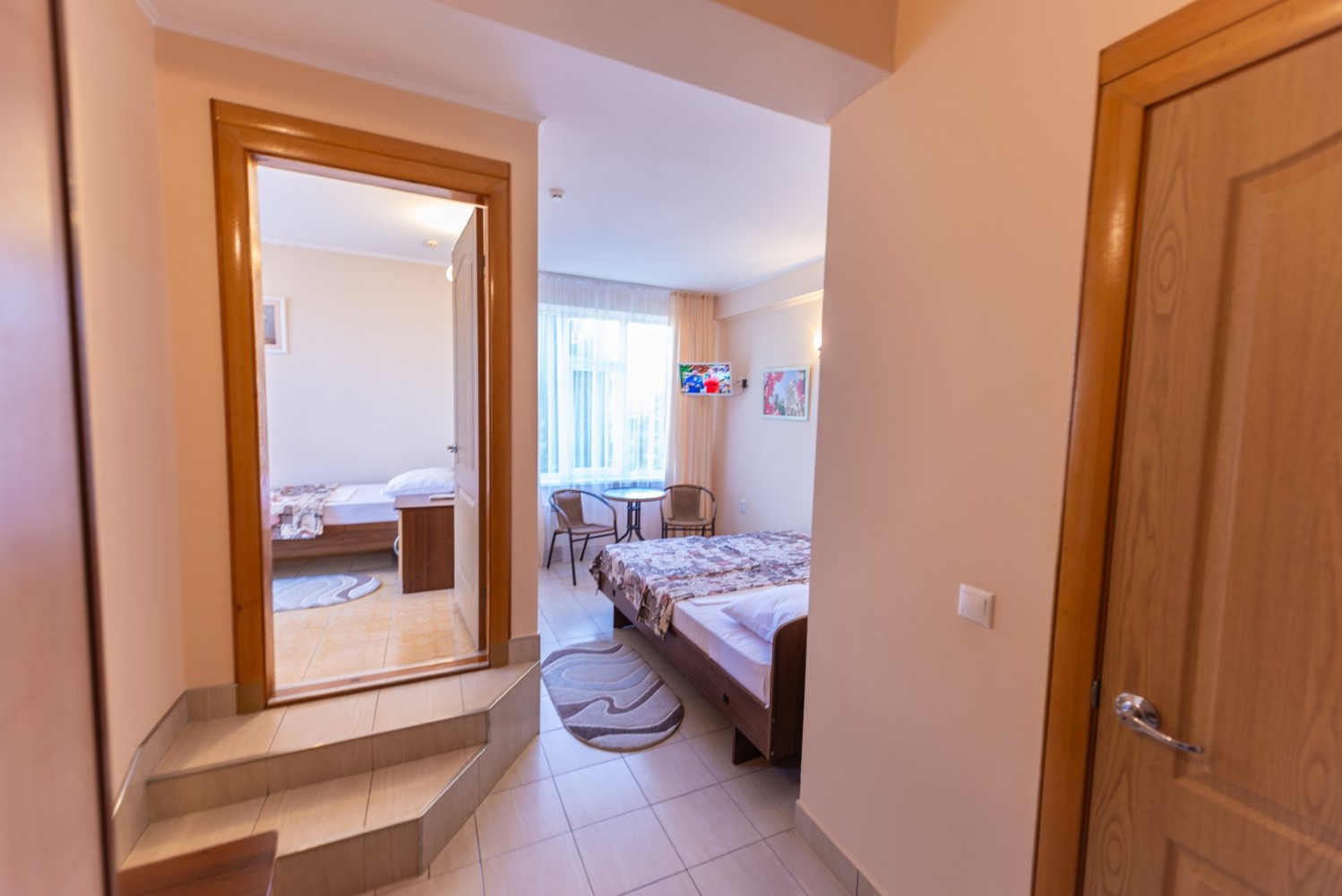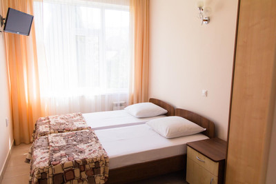 4-мест. стандарт: ТВ, холодильник, кондиционер, фен, четыре 1-спальные кровати, номера на 4 этаже, площадь номера 25 кв.м.