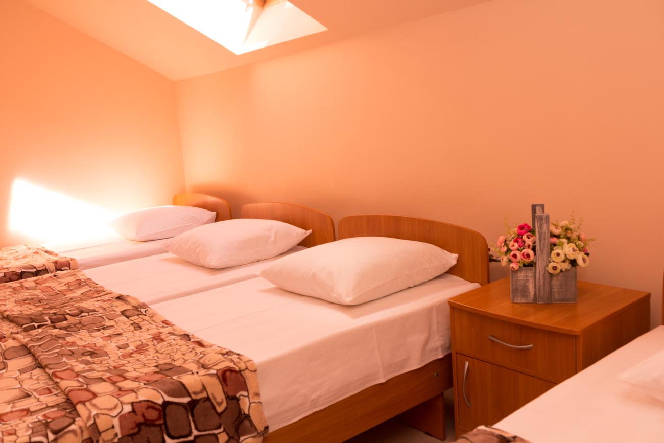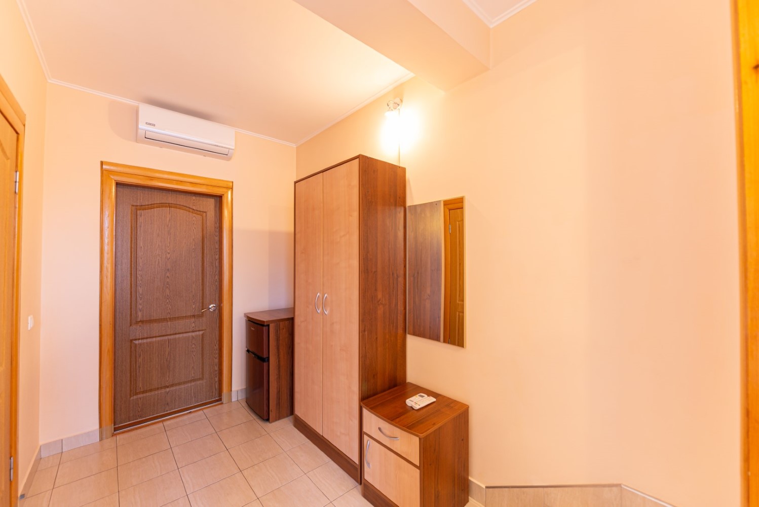3-мест. мансарда: ТВ, холодильник, кондиционер, фен, 2-спальная кровать + 1-спальная кровать, номера на 4 этаже, площадь номера 16-19 кв.м.
