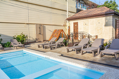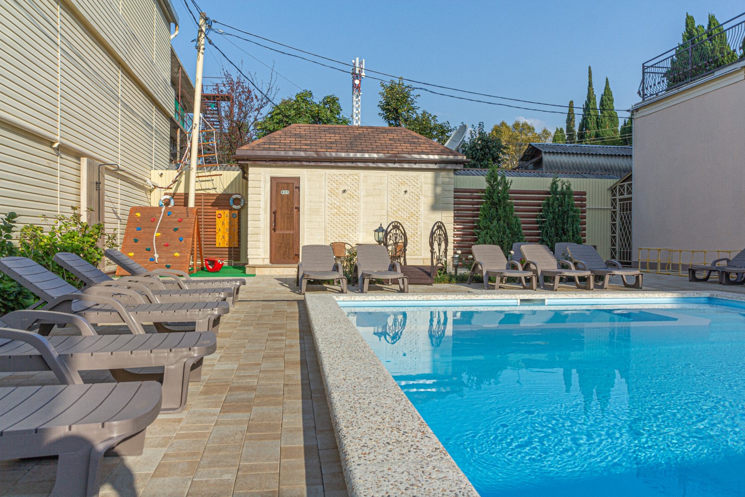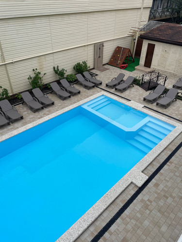 Новый бассейн (2023г.), зеленая территория с зонами отдыха, беседки, декоративный пруд, гладильные принадлежности.