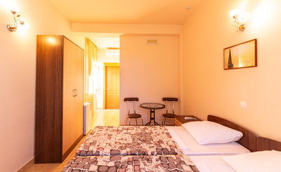 2-мест. мансарда: ТВ, холодильник, кондиционер, фен, две 1-спальные кровати, номера на 4 этаже, площадь номера 14 кв.м.