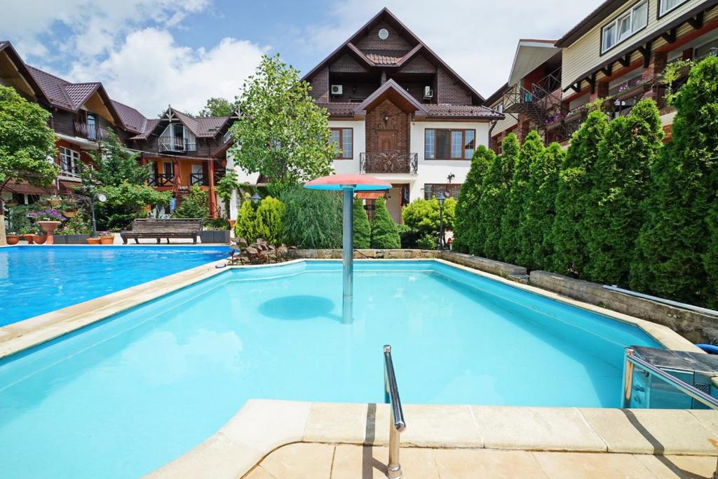 Гостевой дом «Димерчи» расположен в центре курортного посёлка Лермонтово по улице Ленина в самом уютном и тихом месте. Гостевого дома "Демерчи" благоустроенная, просторная, озеленённая и удачно вписывается в окружающий ландшафт. Имеется два бассейна с подогревом и современной инфраструктурой, периметр бассейна оснащён шезлонгами, столиками, зонтами. Для желающих приготовить шашлык предоставляется мангал, тандыр и столы для общего пользования. Имеется кухня для самостоятельного приготовления пищи. Для детей — детская площадка. Для активных гостей — теннисный стол. Трёхэтажное современное здание располагает номерами, оснащёнными всем необходимым для комфортного пребывания гостей. Дом расположен в 200 метрах от аквапарка, магазинов, продуктовых ларьков и кафе. Расстояние до моря — 8-10 минут ходьбы.