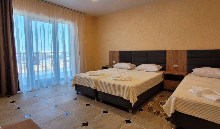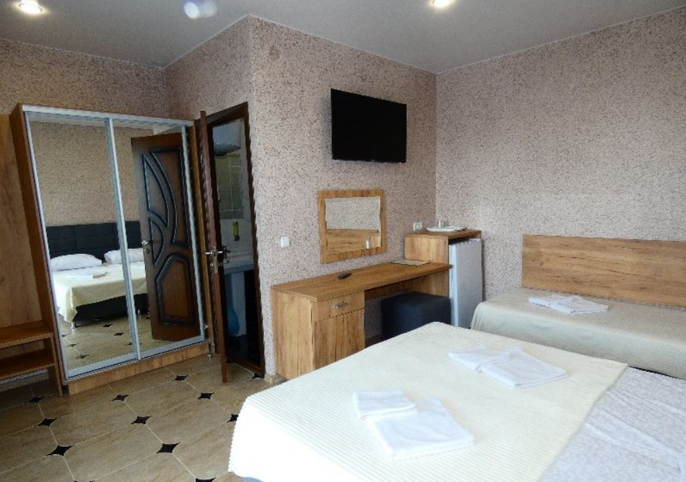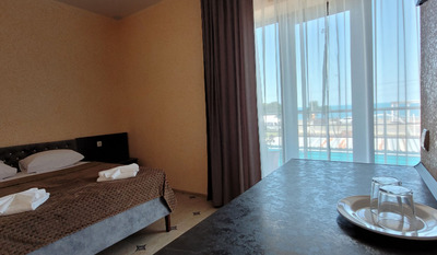 - 2-, 3- местные номера вид на море с удобствами. В номерах туалет, душ, телевизор, холодильник, кондиционер, фен.