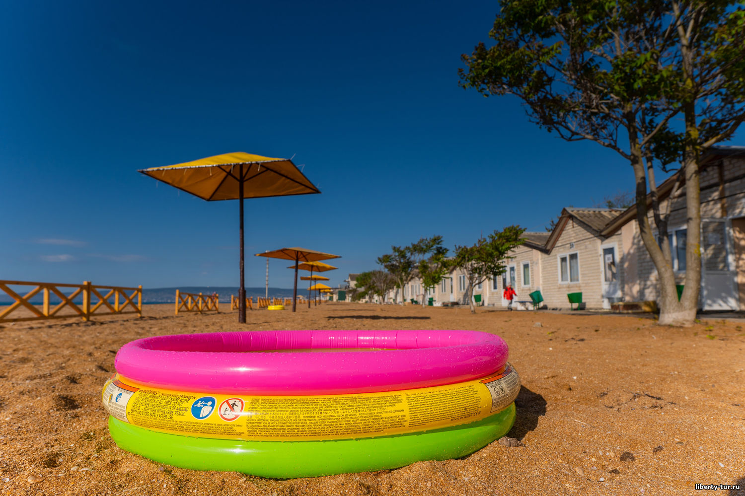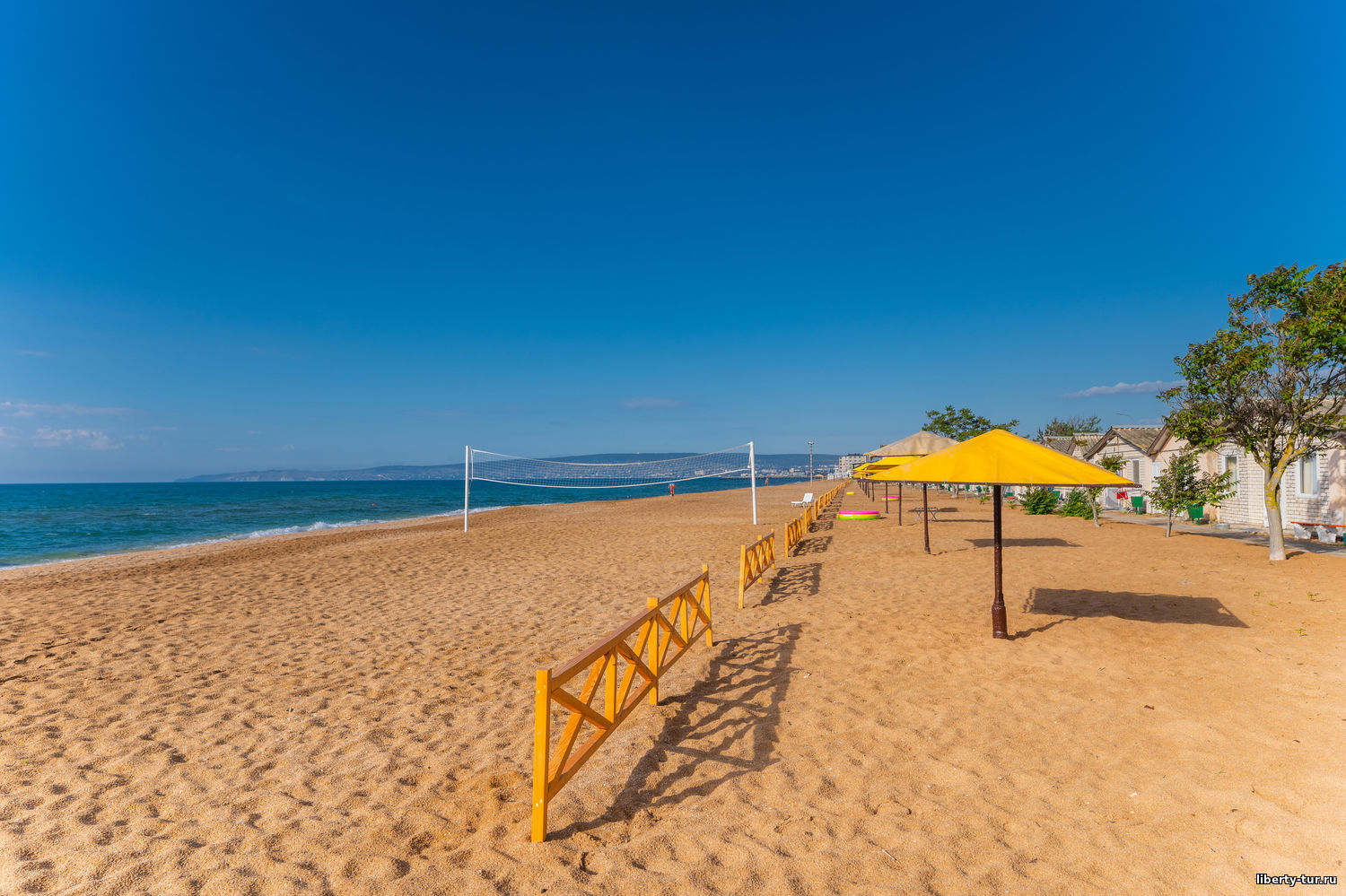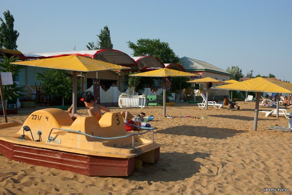 - Пляж: собственный, песчаный, протяженность пляжа 800 метров, в 20 метрах Услуги на пляже: медпункт. Бесплатно: пляжные полотенца, пляжный волейбол, теневые навесы. Платно: душ, надувные аттракционы, прокат пляжного инвентаря, туалет, шезлонги (150 руб.)