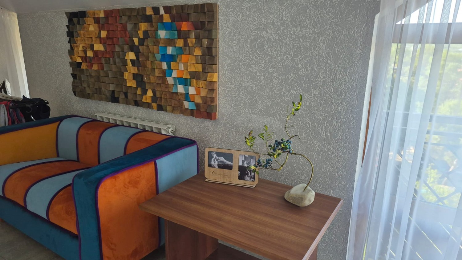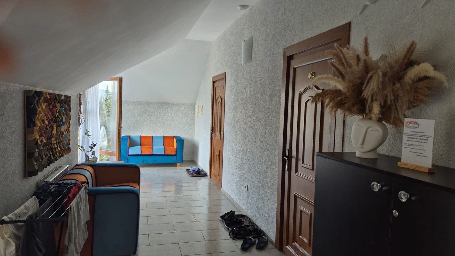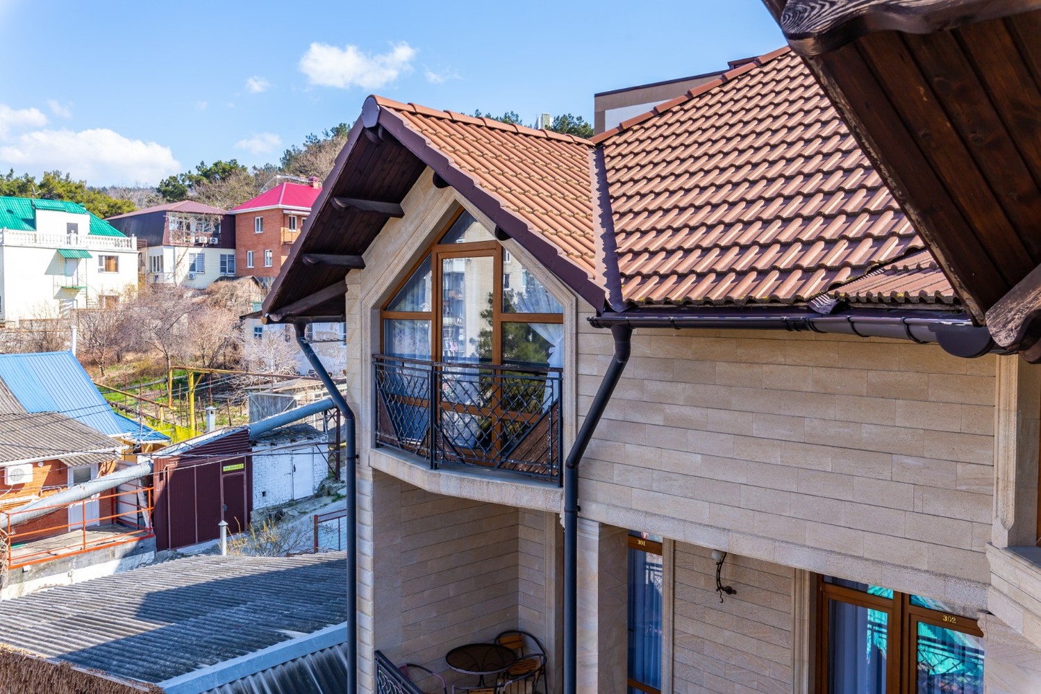 - Вид из окна: мансардное окно, вид во двор, на с.Дивноморское (зависит от конфигурации номера)