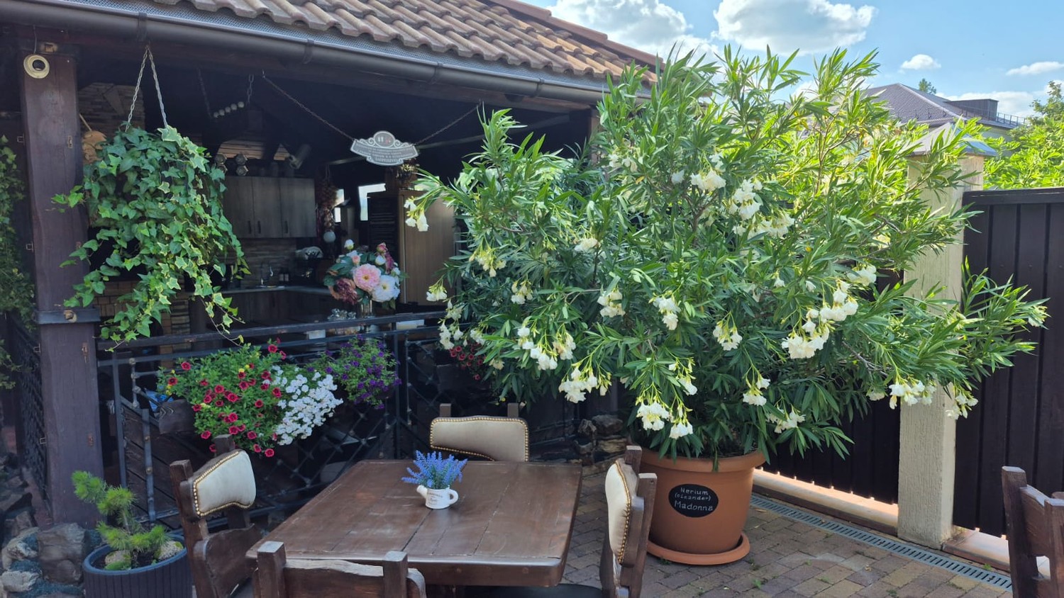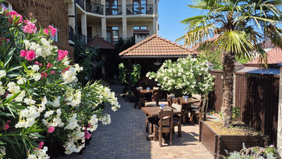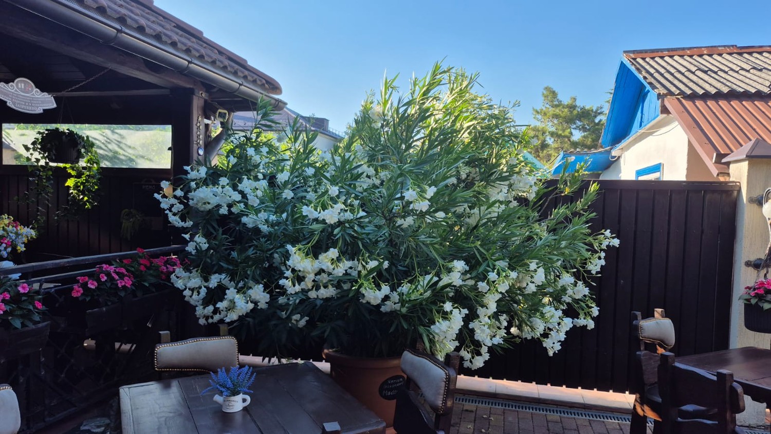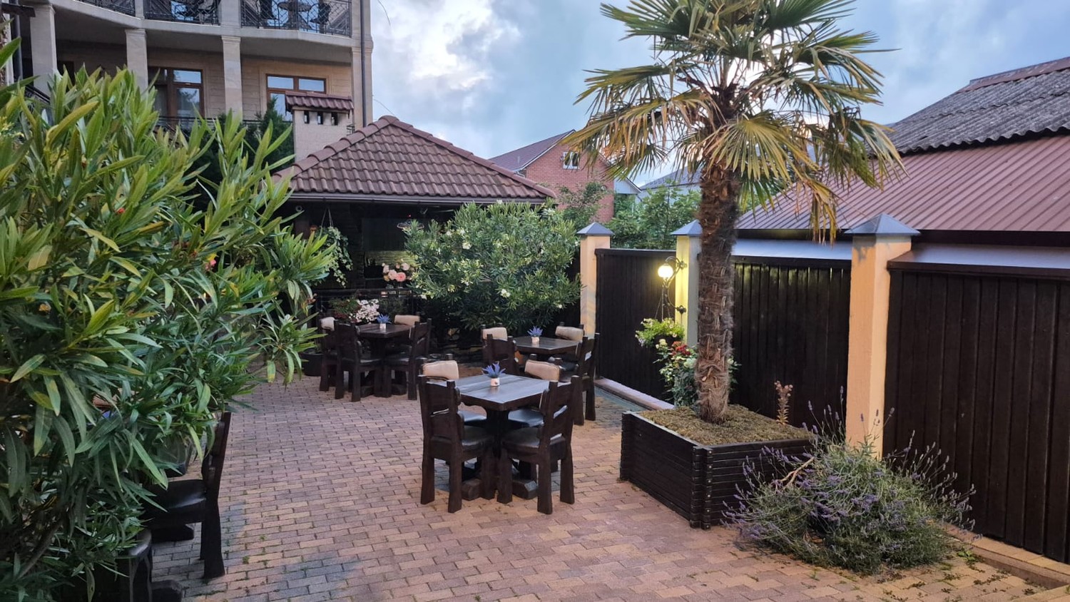 Летняя кухня, великолепный мангал-камин со всем необходимым, белейшая посуда и все для сервировки красивого стола позволяют организовать романтический ужин для любимых или веселый вечер компании друзей под бархатным небом черного моря.