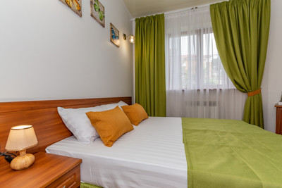 Номер на два человека, который отлично подойдёт для семейной пары. Комната оснащена всеми необходимыми удобствами: быстрый и бесплатный Wi-Fi, кондиционер, мини холодильник, сейф, ЖК телевизор, шкаф для одежды, кружки, стаканы, чайник.