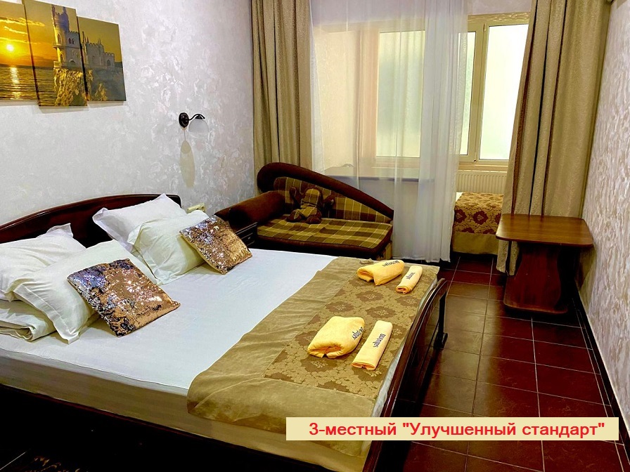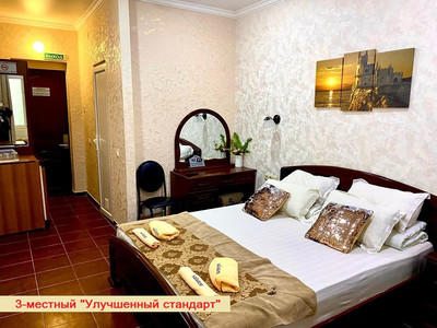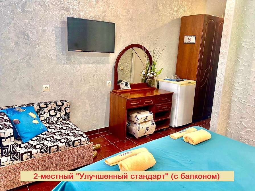 2-местные и 3-местные номера, повышенной комфортности. В каждом номере: санузел с душем, туалетом, раковиной; совместная кровать, прикроватные тумбы, шкаф для одежды, телевизор, кондиционер, холодильник. В 2-местном номере есть БАЛКОН.