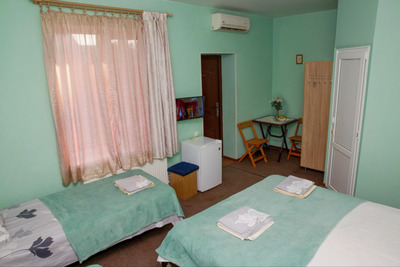 В номере: односпальные кровати, шкаф, стулья, прикроватные тумбочки, стол, вешалка, кондиционер, телевизор, холодильник, цифровое ТВ, санузел с душевой, wi-fi.