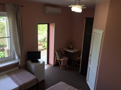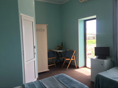 В номере: 2 односпальные или 1 двуспальная кровати, шкаф, стулья, прикроватные тумбочки, стол, вешалка, кондиционер, телевизор, холодильник, цифровое ТВ, терраса, санузел с душевой, wi-fi.