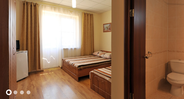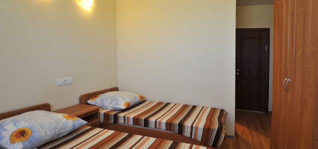 - 3-х местные номера с удобствами и видом на море. В номерах туалет, душ, телевизор, холодильник, кондиционер, балкон.