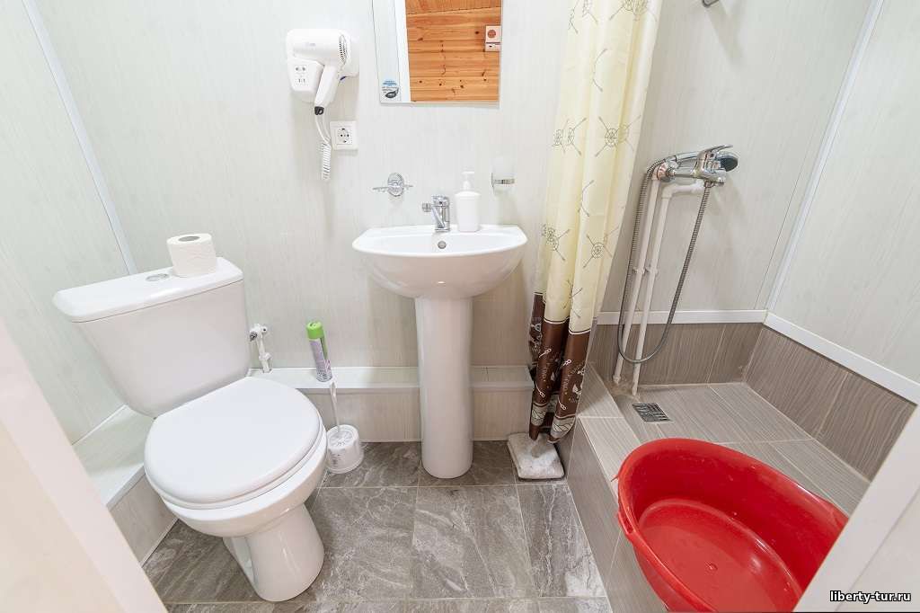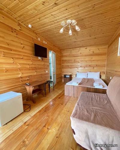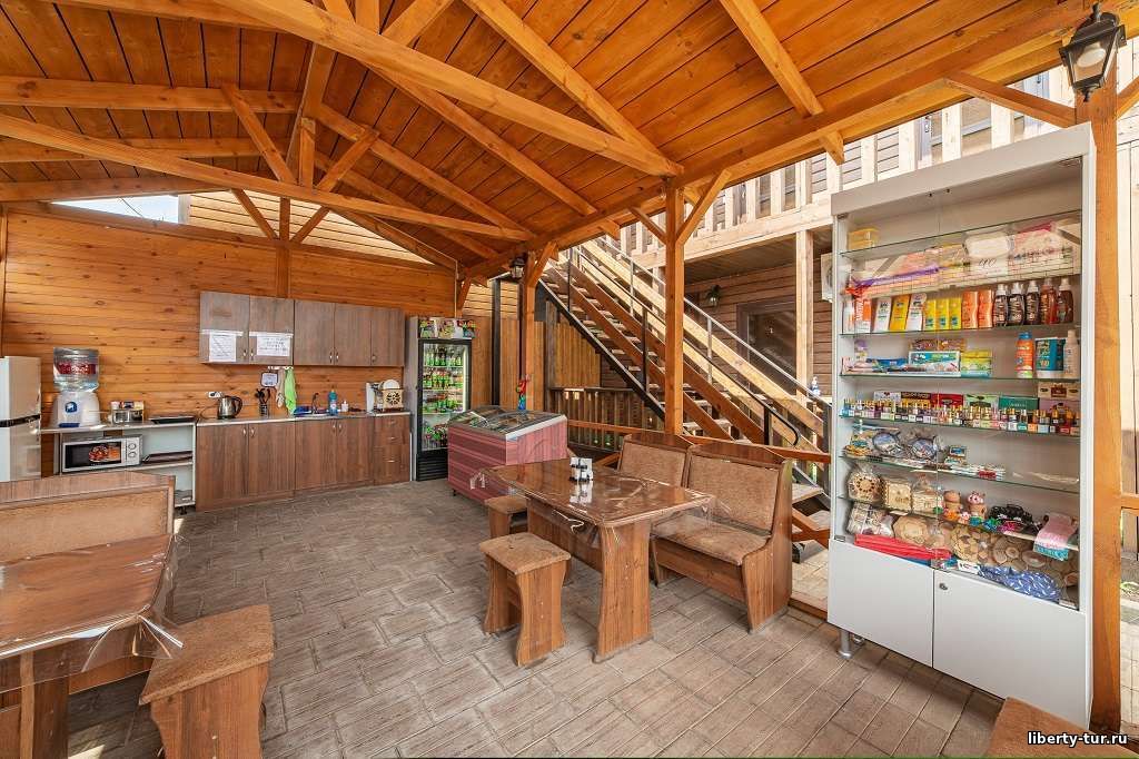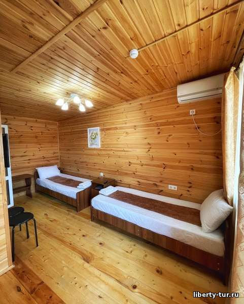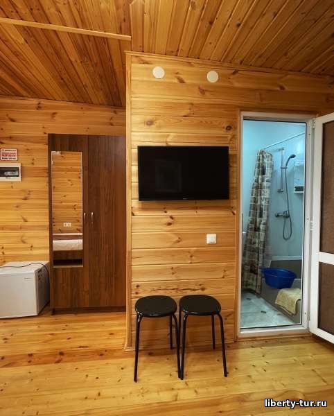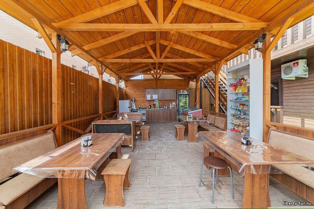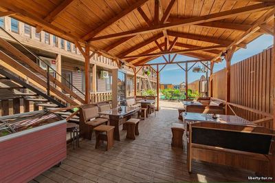 Размещение: в 2-, 3-, 4- местных номерах полулюкс с удобствами, сплит-системой, холодильником, ТВ, феном. В номерах на первом этаже есть терраса со столиками, стульями и сушилкой, на втором этаже общий балкон.