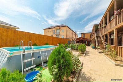 Расположение: гостевой дом “Лазурит” расположен на второй береговой линии, построен в 2018 году. До моря 800 метров. До центра поселка и развлечений 1,6 км. Рынок 700 метров.