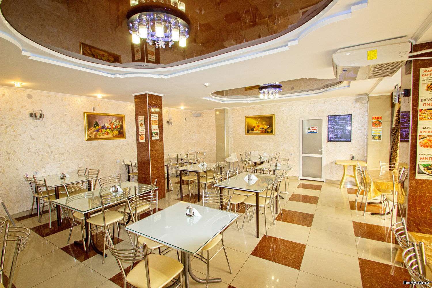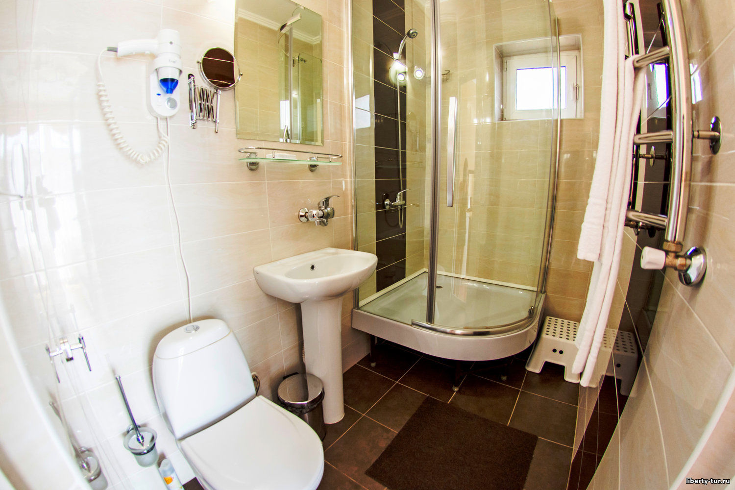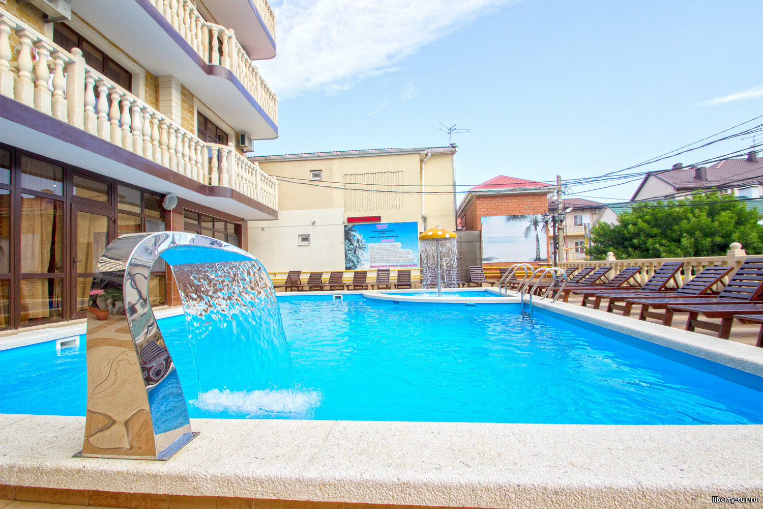 - 2-местные номера с удобствами. В номерах туалет, душ, телевизор, холодильник, кондиционер, фен, сейф, балкон.
